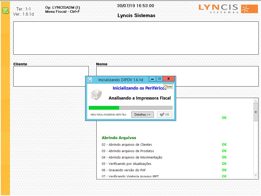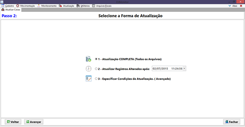 Para finalizar a atualização do caixa o mesmo deve estar na tela “Caixa Livre”