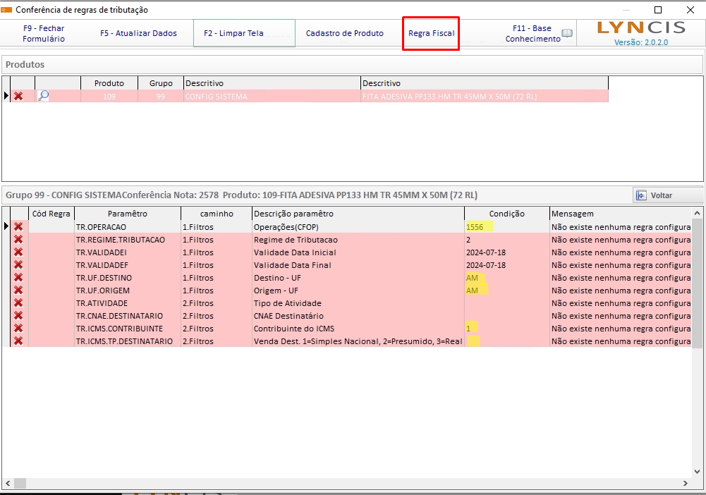 Quando tentar vincular um produto do ERP a um produto do XML e aparecer a mensagem “Produto X utiliza grupo de tributação, porém não existe regra de tributação vinculado ao mesmo” existe uma checagem básica de informações para encontrar o que pode estar faltando em sua Regra de Tributação.