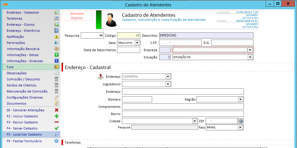 Para acessar o modulo de expedição de pedido, primeiramente é necessário configurar um usuário e um atendente.