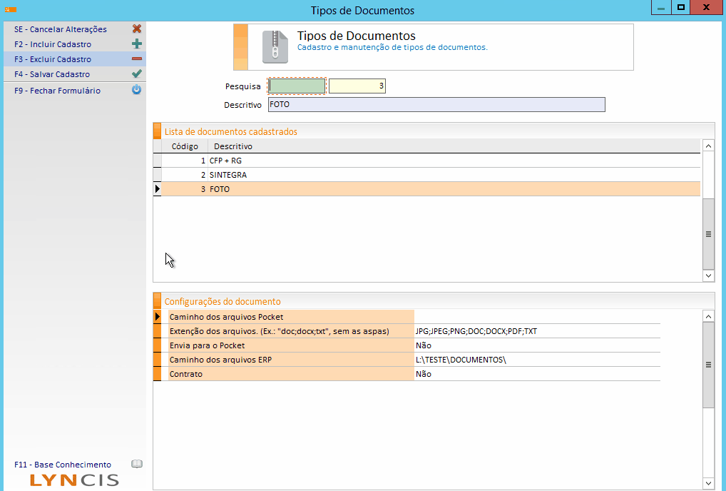 Prosseguindo é necessário cadastrar os “Tipos de Documentos” que serão utilizados: