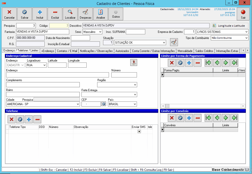 Administração >> Clientes >> Pessoa Física ( Pessoa Jurídica)